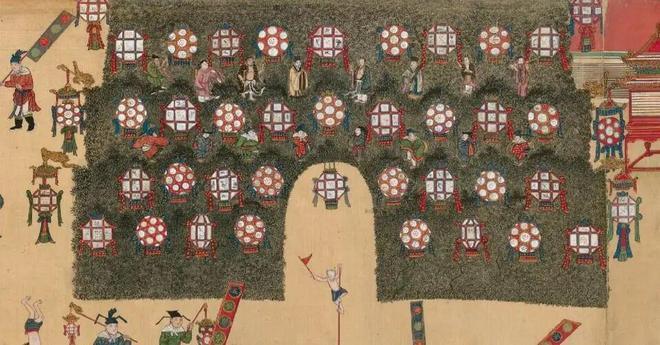 此画第三段中还有一处信息非常重要,画师为我们再现了“鳌山灯棚”。