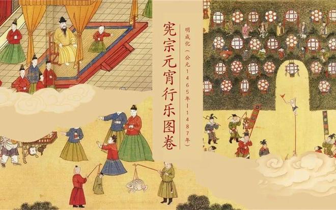 该图是一幅设色艳丽的宫廷画,反映了成化二十一年(1485年)明宪宗朱见深元宵节当天在内廷观灯、看戏、放爆竹行乐的热闹场面,是一幅反映宫廷生活的风俗画。